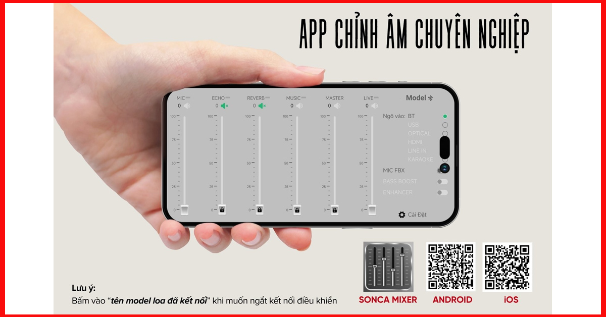 | Vang số | Chỉnh cơ + App SONCA Mixer |